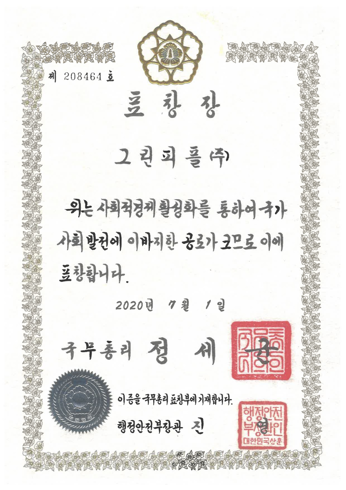 국무총리 표창