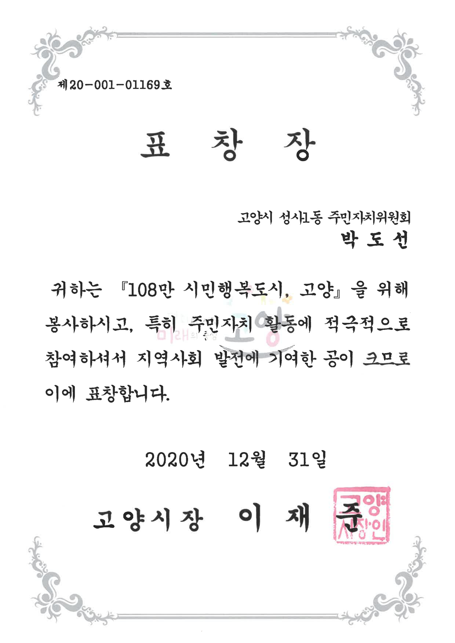 고양경찰서 감사장